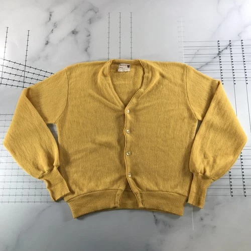 Vintage Amcrest Cardigan Sweater Mens Large Yellow Wool Alpaca V Neck Grunge