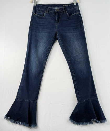 Blank NYC Jeans Womens 28 Blue Denim Dark Wash Kick Flare Cut Off Frayed Hem