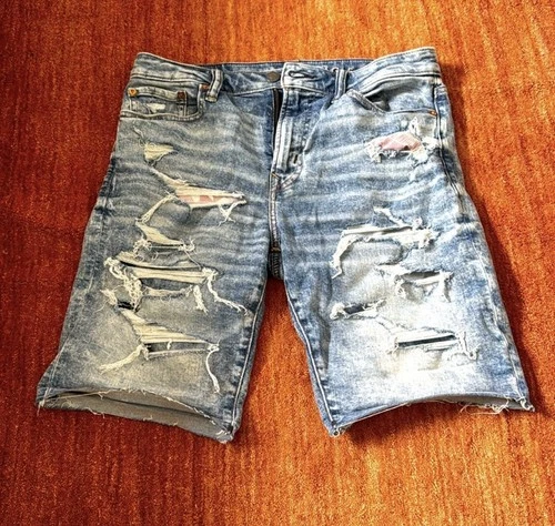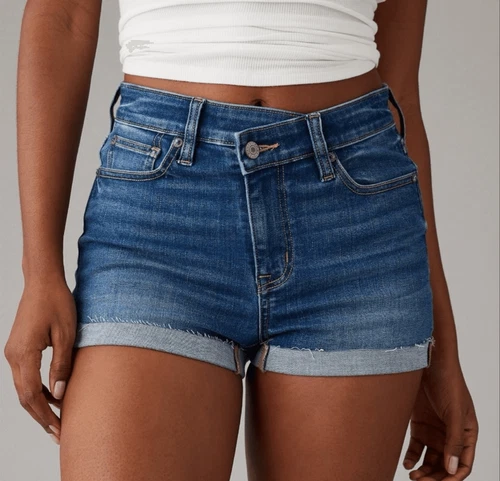 American Eagle High Rise Shortie Denim Shorts Cuffed Raw Hem Stretch Size 18 NEW