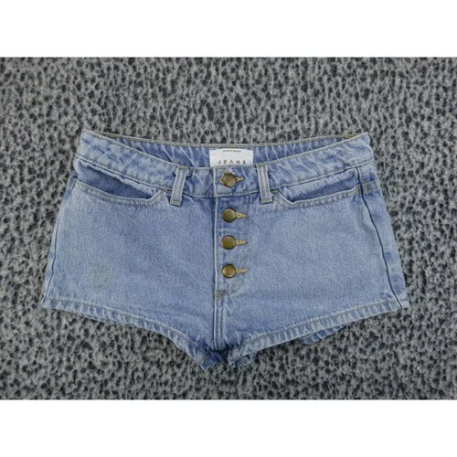 American Apparel Denim Hot Shorts Womens 26 Blue High Waisted Button Fly
