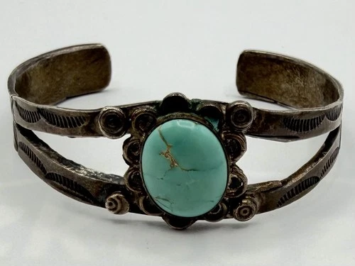 Vintage Old pawn Navajo Native American Turquoise Sterling Silver Cuff Bracelet
