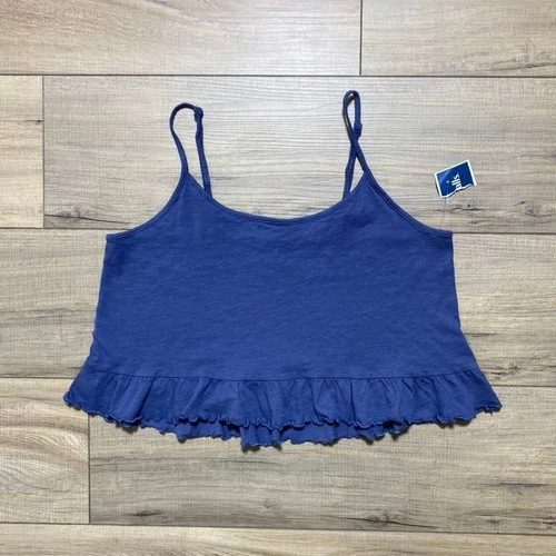 American Eagle Womens Ruffle Hem Cropped Tank Top Size Small Blue