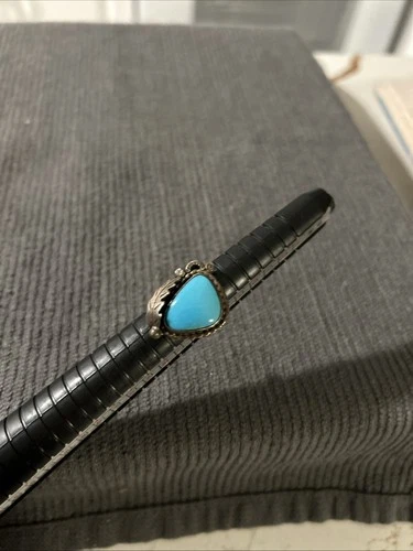 Native American Teardrop Silver Turquoise Ring With Feather Detail Size 5
