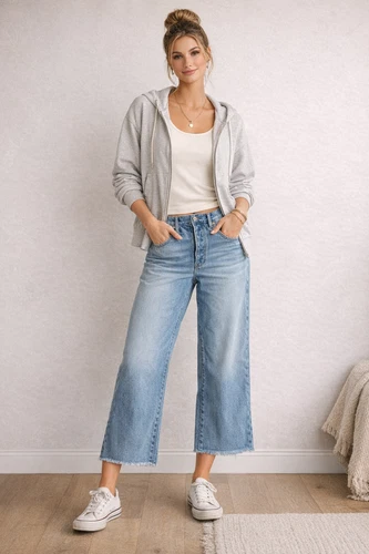American Eagle Jeans Women Sz 14 (32x24) Wide Leg Crop Frayed Hem Button Fly