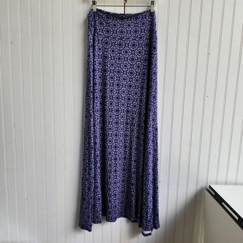 MARKET & SPRUCE Joven Knit Stitch Fix Maxi Skirt Blue White Geo Print Rayon XL