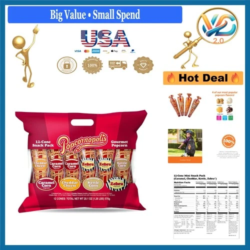 Gourmet Popcorn Cone 12 Pack Assorted Flavors Gift-Ready Snack Variety