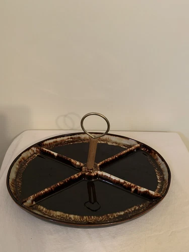 Vintage Pfaltzgraff Brown Drip Oval Cheese Cracker Divided 14" Platter USA Made
