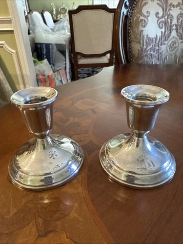 Pair Of Towel Sterling Silver Candlesticks 3.25” Tall- Weighted- Great Condition
