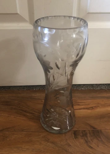 Antique ABP Cut Crystal Corset Vase Etched Floral Fern Brilliant Glass Period