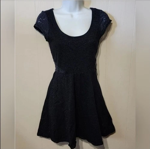 American Eagle Dress XS Mini Navy Cap Sleeve Sparkle Lace Sheer Back A377