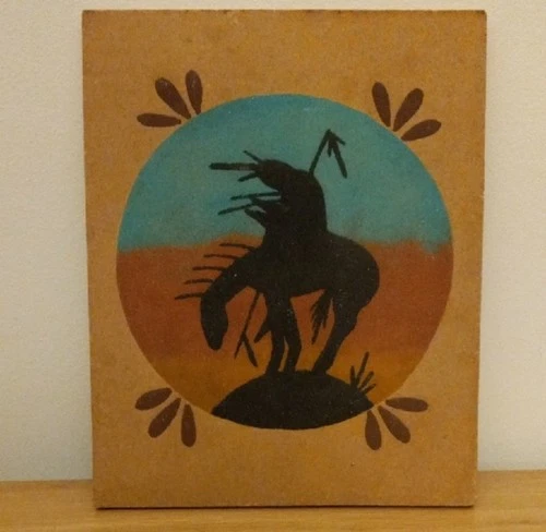 Signed Vintage Native American Western Sand Painting "Trail of Tears" Picture