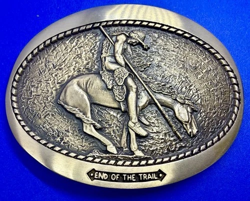 End of the Trail Horseback Native American Indian Saga Solid Brass Belt Buckle