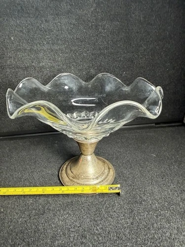 Amston Sterling Reinforced No. 571 Glass Silver Footed Compote Candy Bowl