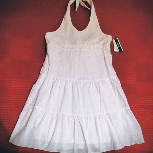 NWT $50 Amy Byer White HALTER Dress tiered & crochet Sundress girls 14 Boho core