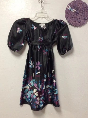 Amy Byer Girls tunic top dress size 12 black turquoise purple empire waist 100