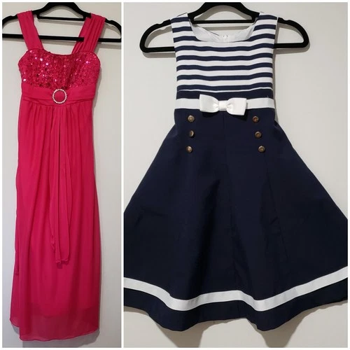 BONNIE JEAN Navy Sailor Dress Nautical Party Church Amy Byer Long Pink Girls 7,8