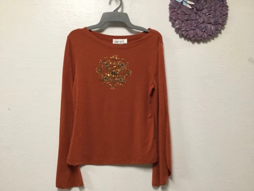 Amy Byer Girls Blouse Size Large 10 to 12 Rust Red Beaded Long Sleeve 165