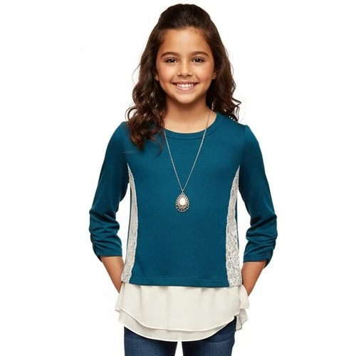 Amy Byer Blouse Girls M 10-12 Blue White Layered Ruched Sleeve Knit Boho Chic