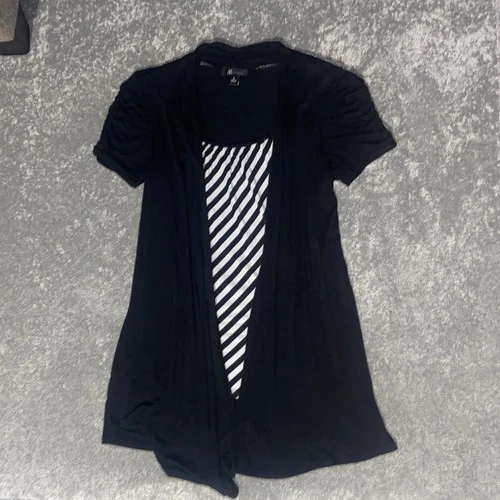 AB Studio by Amy Byer ladies attached cardigan shirt Small 4/6 black & white