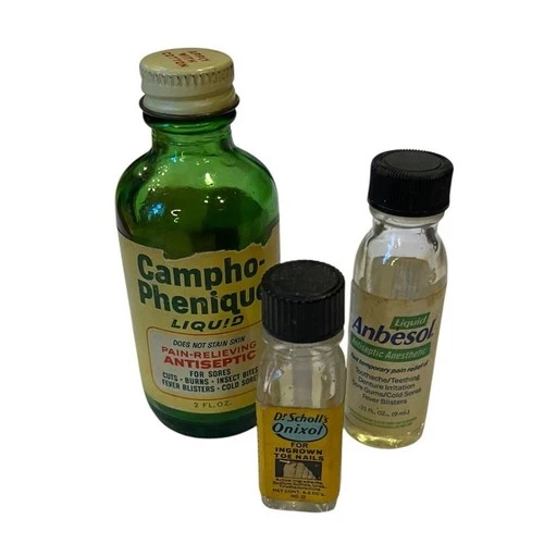 Vtg Lot Of 3 Medicine Campho-Phenique Anbesol Onixol Glass Bottle USA Props