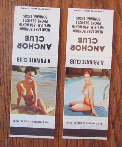 GIRLIE PIN-UP PHOTO MATCHBOOK COVERS: ANCHOR CLUB BONHAM, TEXAS MATCHCOVERS -B10