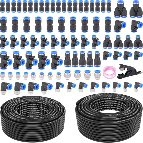90 Pcs DOT Air Line with Quick Connect Air Fittings Kit 2 Roll 100FT 1/4" and 3/