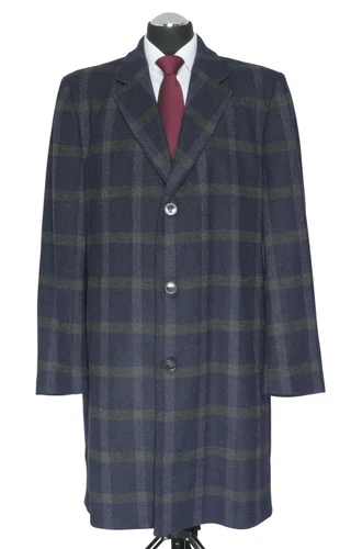 Andrew James Men's Wool Coat 2XL 56 Blue Dark Blue Checked Single Breasted