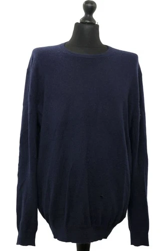 Andrew James Men's Sweater Pullover 3XL Blue Dark Blue Crew Neck 100% Cashmere