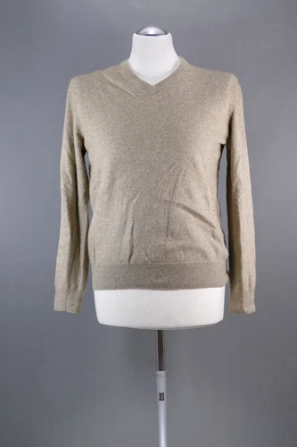 Andrew James Men's Sweater S Beige Light Brown V-Neck With Cashmere B141