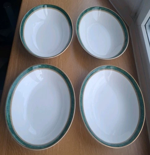 x4 Royal Doulton St Andrews Green Marble Gold Rimmed Oval Serving Bowls 25½cm