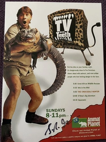 STEVE IRWIN HAND SIGNED AUTOGRAPH ON ANIMAL PLANET 2000 PROMO PHOTO CARD