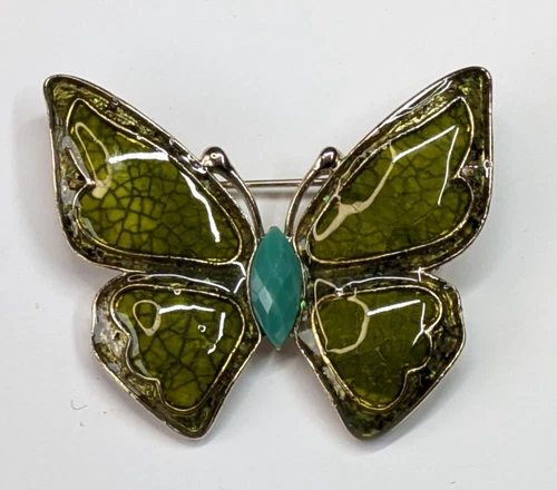 VTG Liz Claiborne Green Enamel Blue Rhinestone Butterfly Statement Brooch Pin