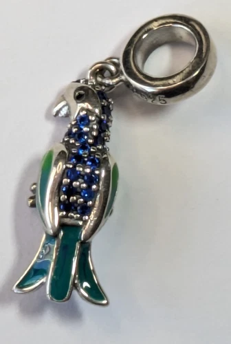 Sterling Silver 925 Green Enamel Blue Rhinestone Parrot Charm for Slide Bracelet
