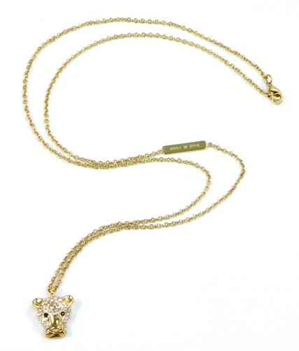 Bud to Rose by Diddi Gold Tone Cheetah Leopard Rhinestone Cat Pendant Necklace