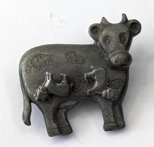 Vintage Pewter Cow 1.25" Brooch Pin 1/4" Pierced Calf Earrings Set
