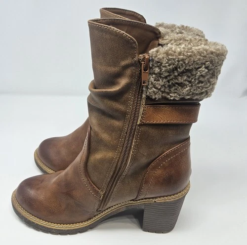 Zigi Soho Boots Womans Sz 7 Brown Booties Ankle VEGAN Faux Fur Buckle Chunky Y2K