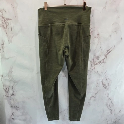 Prana Leggings Womens Large Green Becksa Ribbed High Rise Crop Short Length 7/8