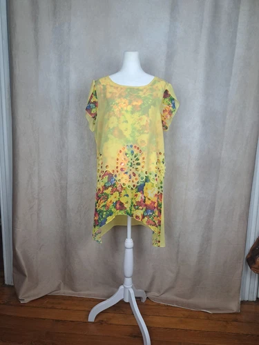 Anself Womens Floral Bilevel Yellow Top Size XL