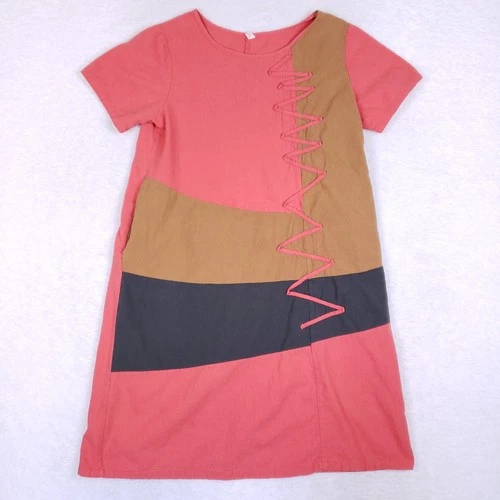 Anself Color Block Patchwork Lace Up Cotton Dress XL Boho Indie Festival