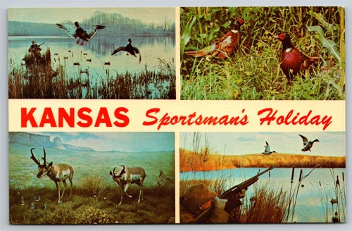 KS Kansas Sportsman's Holiday Hunter Hunting Ducks Pheasant Antelope Postcard