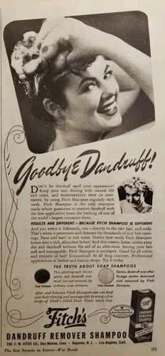Fitch's Dandruff Remover Shampoo Pretty Lady Washing Hair Print Ad 1943