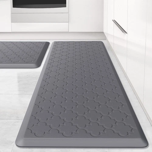 Kitchen Mat [2 PCS] Cushioned Anti-Fatigue 17.3"x29"+17.3"x47", Stylish Grey