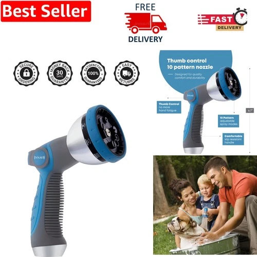 Heavy Duty Garden Hose Nozzle - 10 Spray Patterns with Ergonomic Thumb Control