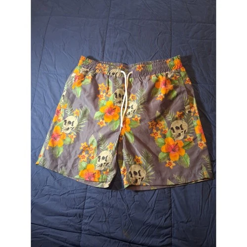 Anti-Hero Skateboards Mens Skull Tropical Floral Swim Trunks Board Shorts Large