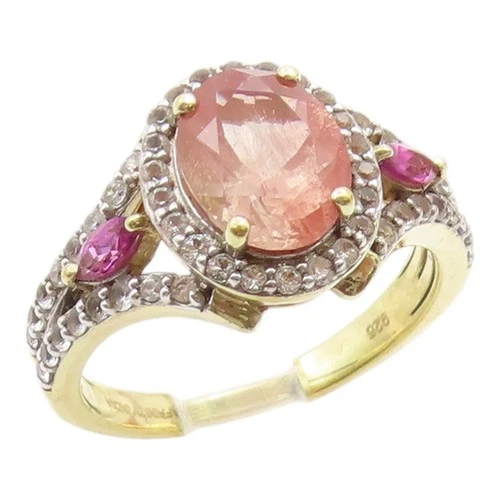 925 Sterling Silver Vintage Ring Gold Plated Multi Gemstone Band Sz 7 RG36037