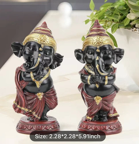 Ganesha Statues Set Of 2 Antique Red And Golden Statues Home Decor Gift Hindu
