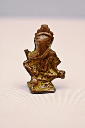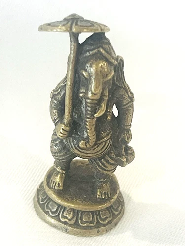Antique Ganesha Miniature Statue Brass Hindu God Circa 1940 1.6" Tall Collectibl