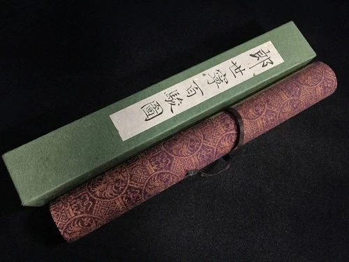 J0480 Vintage Antique Style Chinese Scroll Painting Landscape Horse Makimono Box