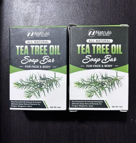 Tea Tree Oil Soap Bar for Face & Body - 4oz Antifungal Antiseptic Natural Pack 2