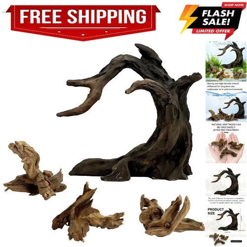 Aquarium Driftwood Decor Set - 1 Anubias Resin Model & 3Pcs Small Natural Dri...